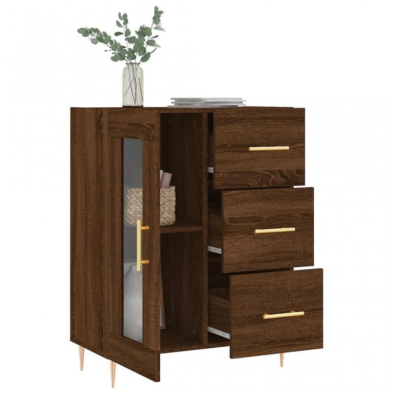 Avec son design intemporel, ce buffet classique est un complément parfait à votre maison. Matériau robuste : Le bois est un matériau d'une qualité exceptionnelle avec une surface lisse qui se caractérise par sa solidité, sa stabilité et sa résistance à l'humidité. Un grand espace de rangement : avec ses 3 tiroirs et ses 2 compartiments derrière le buffet. Equipé d'une porte vitrée, le buffet offre beaucoup d'espace de rangement. espace pour ranger soigneusement et à portée de main divers objets du quotidien Présentation : La plaque supérieure robuste de cette armoire est idéale pour. Pour exposer des objets de décoration, des cadres et des plantes en pot.Porte pratique : Vous pourrez ranger vos objets les plus importants dans ce meuble de manière élégante et ordonnée pour les protéger de la poussière.Pieds en métal : Les pieds en métal lui donnent un aspect agréable et assurent la sécurité en même temps pour la stabilité. Attention : pour éviter de basculer, ce produit doit être fixé avec le support mural fourni.