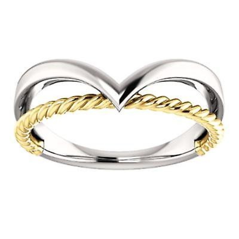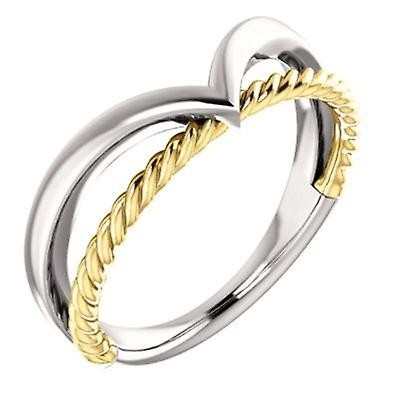 Bague en or blanc 14 carats et or jaune poli avec corde à espace négatif, taille 6,5, bijoux cadeaux €560.0 |