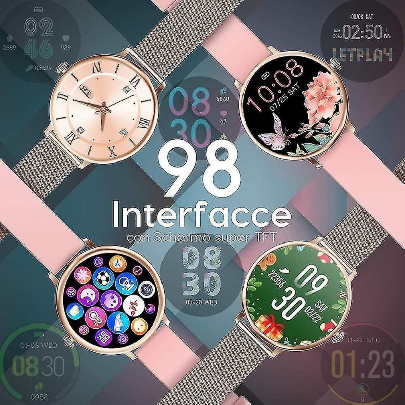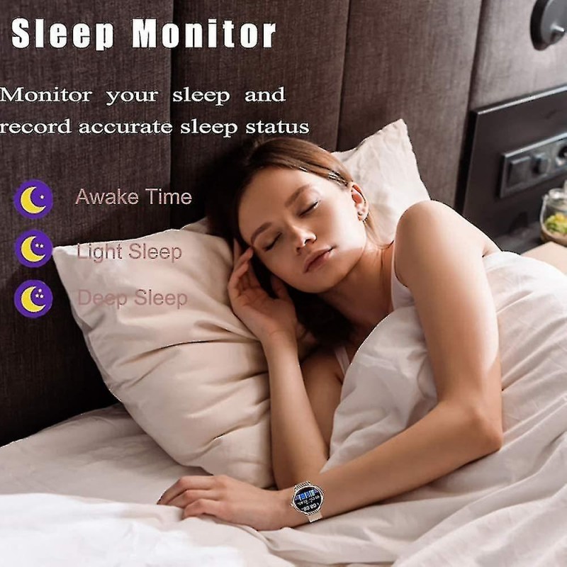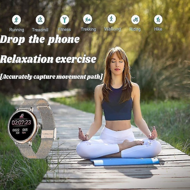 Montre connectée étanche à écran tactile complet Le look élégant de cette montre connectée à écran tactile est le meilleur cadeau pour les femmes, mesure de la fréquence cardiaque, pression artérielle, surveillance du sommeil, cycle physiologique féminin, podomètre, kilomètres sportifs, consommation de calories, photographie de distance, rappels sédentaires, de nombreux modes sportifs, etc. Étanche, résistant à la transpiration et à la pluie dans la vie quotidienne. 8 modes de sport et étanchéité IP67 Suivez les activités tout au long de la journée, y compris les pas, la distance, les calories brûlées. 8 modes sportifs surveillent vos données de mouvement pour personnaliser l'exercice. Course à pied, cyclisme, football, etc. Vous pouvez surveiller vos mouvements de natation dans la piscine et les porter sous la douche froide. Notifications et SMS Recevez des appels, des SMS et des messages SNS, Facebook, WhatsApp, Twitter, Instagram, etc. Lorsque vous recevez une notification, la montre vibre pour vous le rappeler. Connectez simplement le bracelet à votre téléphone via l'application et définissez-le dans l'application. Aucun appel ou message n'est manqué. Moniteur de fréquence cardiaque et surveillance du sommeil Avec les capteurs optiques intelligents intégrés, le tracker d'activité surveille votre fréquence cardiaque en temps réel et détecte automatiquement votre fréquence cardiaque. De plus, elle surveille efficacement la qualité de votre sommeil et fournit une analyse complète de la qualité du sommeil pour vous aider à développer un mode de vie plus sain. Compatibilité et autres fonctionnalités Cette montre est compatible avec les smartphones utilisant iOS 9.0 / Android 4.4 ou supérieur et Bluetooth 4.0 ou supérieur. Cette montre dispose également de fonctions d'alarme, de chronomètre, de contrôle à distance de l'appareil photo, de prévisions météorologiques et de réglage de la luminosité. (Non compatible avec l'iPad)